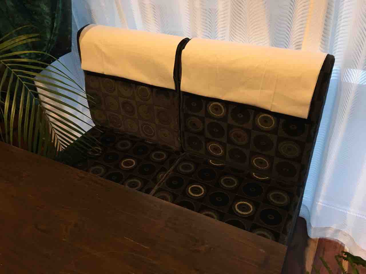 純喫茶画像をジロジロ拝見して、背もたれに白カバーをかけるアイディアを取り入れました。